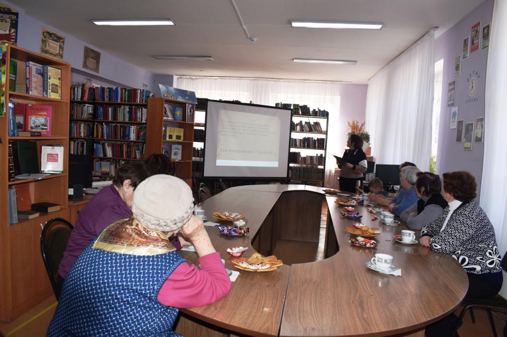 В районной библиотеке в рамках проекта «Досуговый центр «Возраст счастья», который осуществляется при поддержке Фонда президентских грантов, для пожилых и людей с ограниченными возможностями здоровья прошла духовная гостиная «За Русь святую, за землю русскую». Встреча прошла содержательно и интересно.