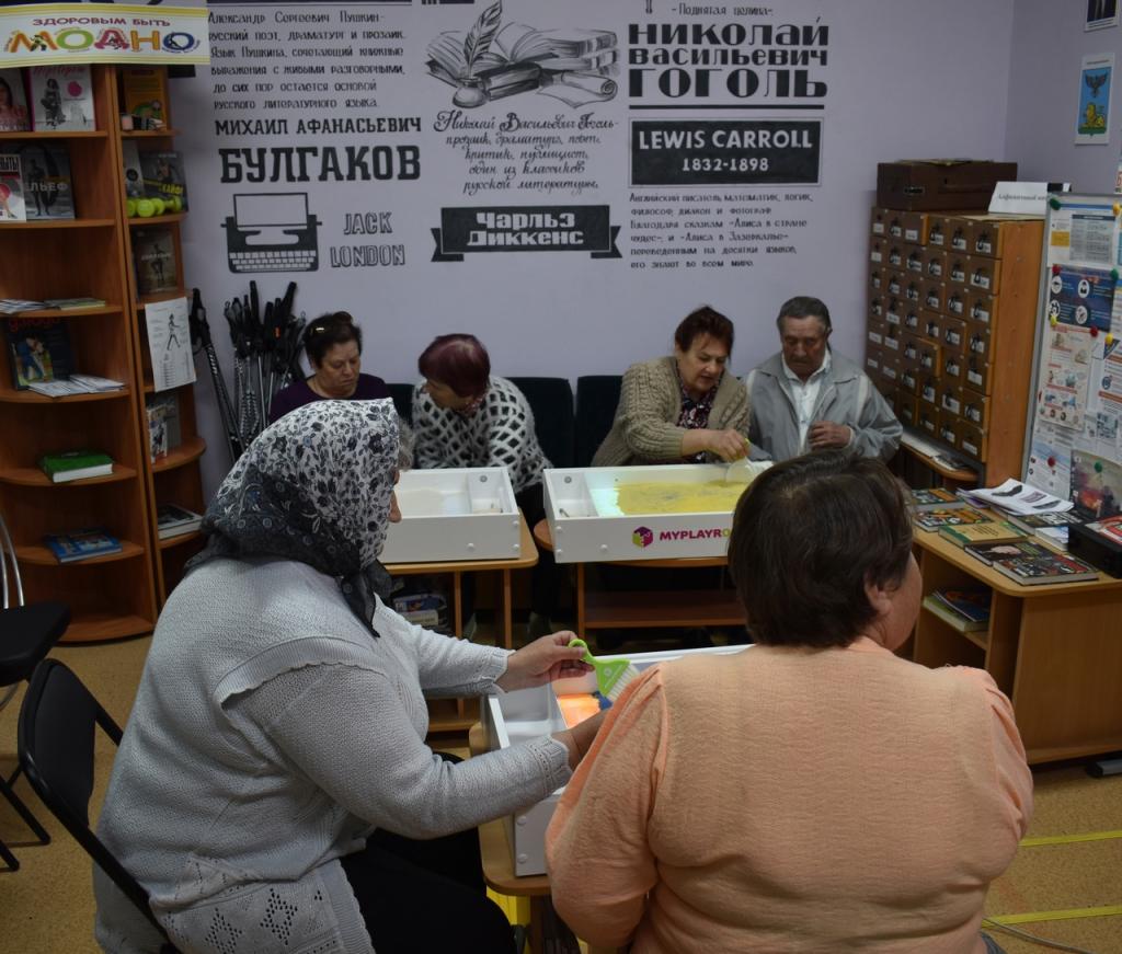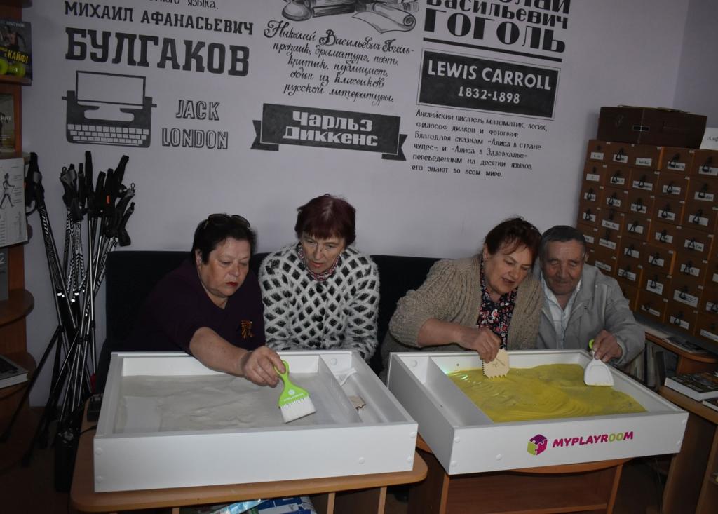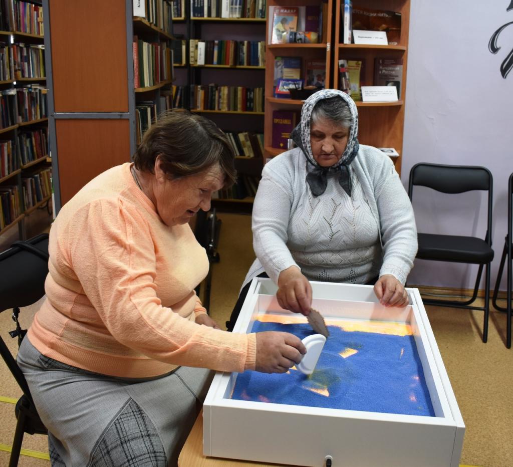 В рамках проекта «Досуговый центр «Возраст счастья» при поддержке Фонда президентских грантов в районной библиотеке прошел мастер-класс «Песочная фантазия»